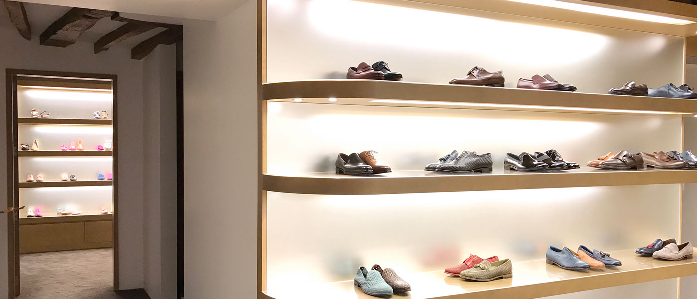 1. Un espace avec étagères : showrooms accessoires, chaussures ou maroquinerie